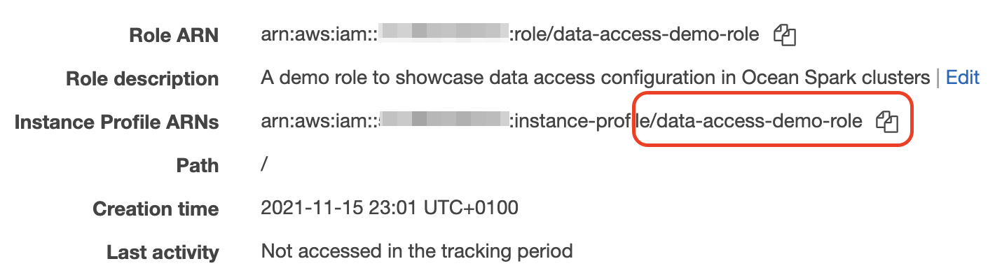In the Spot console, configure the Virtual Node Group (VNG) of your Ocean Spark cluster to use the instance profile associated to the cluster account IAM role.